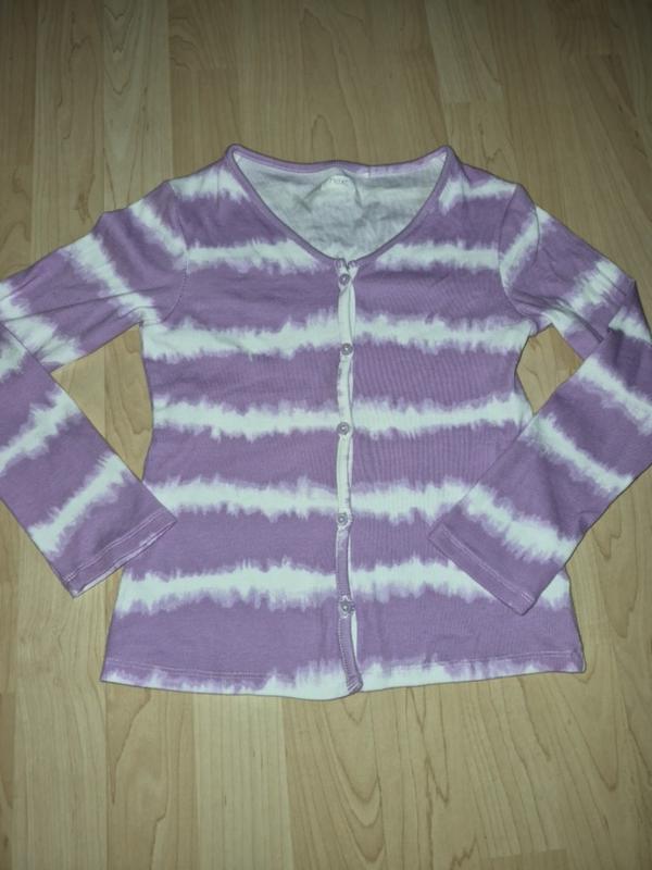 Джемпер сиреневого цвета в белую полоску. Можно надевать на тело, или на футболку, очень красиво выглядит. Тканина у рубчик, 95% cotton. Измерение на фото