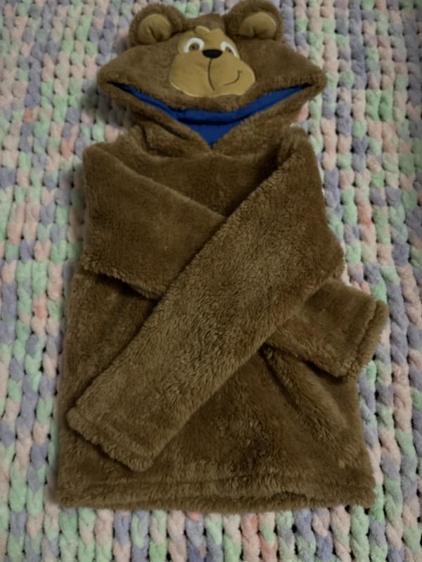 Очень теплая кофта, с утеплителем, мягкая и удобная, имеет капюшон- медведик. Подойдет как для девочки так и для мальчика. На боковой стороне 4-5 лет, маломерят. Подходит на 2-3 года
