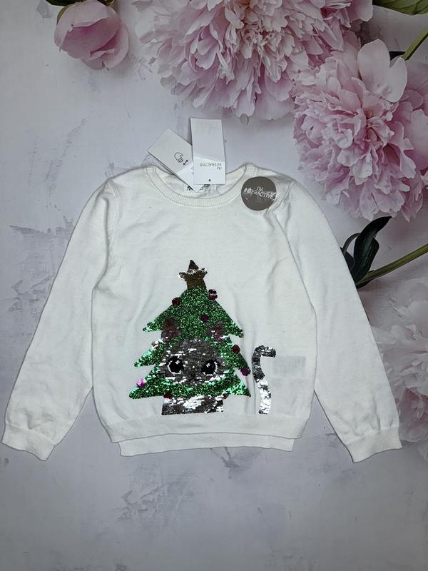 🎄Джемпер тонкой вязки с рисунком из пайеток.🎄 😍 НОВЫЕ с бирками😍 👉H&M👈 🔹2-3 года (3) длина 34/38. ПОГ 31. рукав 36 🔹3-4 года (2) длина 36/39. ПОГ 33. рукав 37 🔹4-6 лет (6) длина 40/42. ПОГ 34. рукав 42
