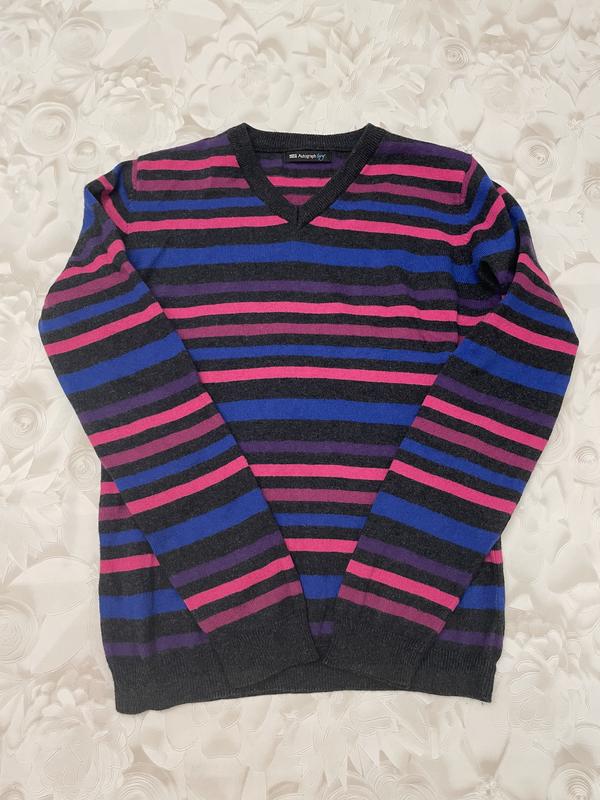 Стильный джемпер из коллекции Autograph связан из смеси хлопка и кашемира. Модель выполнена в удобном стандартном крое, с V-образным вырезом. Яркие горизонтальные полосы придают модели эффектный вид. Autograph: инвестиционные изделия премиум-класса с современным кроем и изысканной отделкой. Есть нюанс на спинке ( фото 4-5) Исправить там легко (там где пристрочена бирочка) А в остальном всё отлично Свитерок тоненький и при это тёпленький Расцвета - стильная, яркая и очень красивая Размер указан 152 По плечикам 35 см ПОГ 43 см Ширина по низу манжеты 34 см Длина рукава 59,5 см ( из них 4 см манжета) и 45.5 см от низа проймы ДИ 57.5 см и 37 см от низа проймы 85% хлопок 15% кашемир На бирочке Autograph boy, но носила дочка Подойдёт как мальчику так и девочке