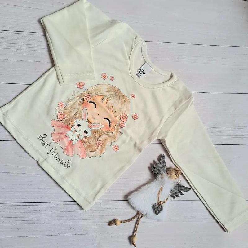 Чудовий лонгслів на дівчинку. Відмінної якості ✅️. Колір: молочний. Розмір: 56. Зріст: 92.