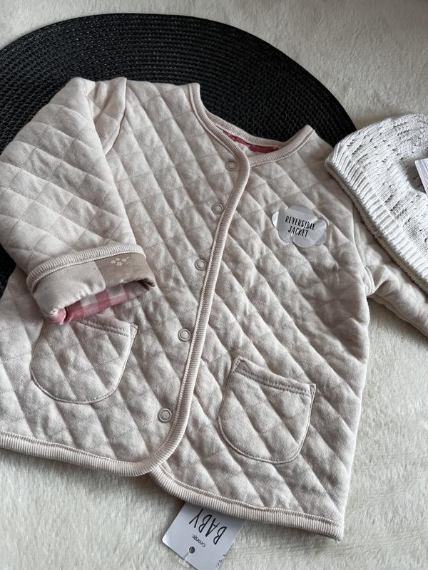 Кофтинка двусторонняя от George 🌸 Размер 9-12 мес Цена: 450 грн Шапочка белая вязаная Cool Club Размер 48/50 см Цена: 150 грн