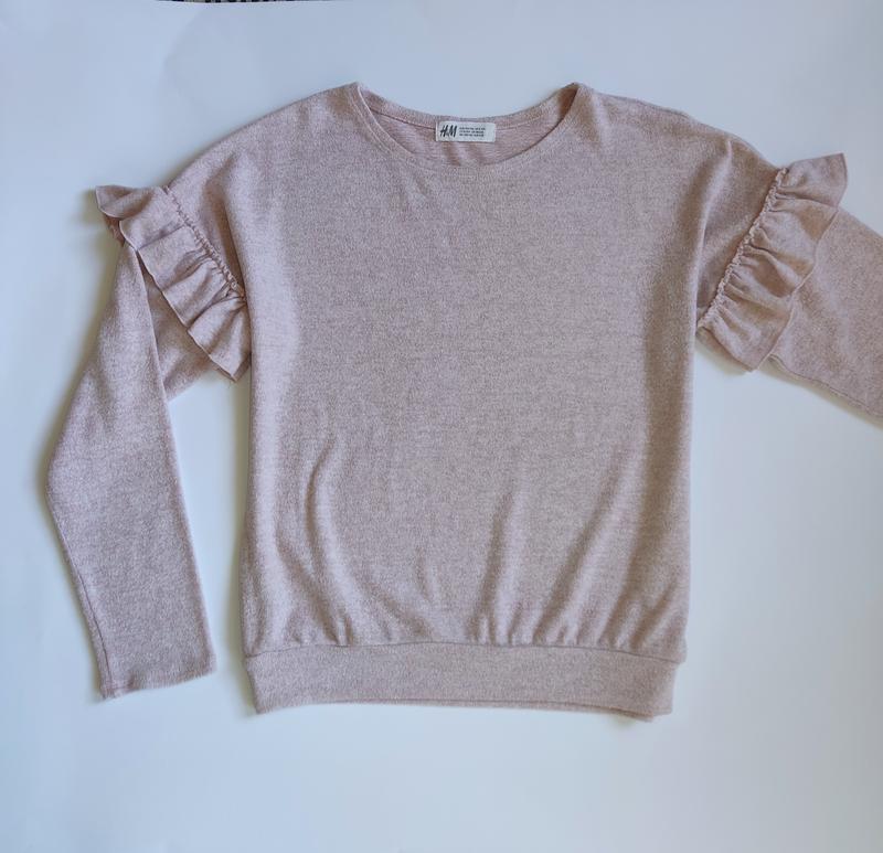 легкий реглан с рюшами оригинальный цвет -фото1 полотно мягкое и приятное на ощупь на возраст 8-10 лет на рост 134/140 без дефектов рукав от воротника 56,5 см длина 47 см под рукавами 42 см