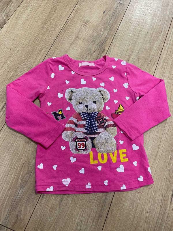 Минимальный заказ на 100 грн Хорошенький розовый джемпер в хорошем состоянии, немного потрескан рисунок и отклеены несколько стразиков и сзади пятнышко. Длина изделия по спинке 38 см, ПОГ 28 см, длина рукава 34 см. Ткань тянется. Модель 4306