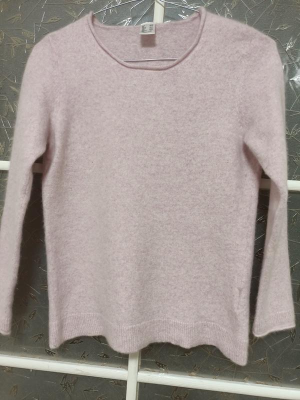 Джемпер в очень хорошем состоянии. Дефектов нет. Размер указанный S на 10-12рокв. 100%кашемир. Цвет меланж розово белый. ПОГ 41см Длина 55см Длина рукава от горловины 59см