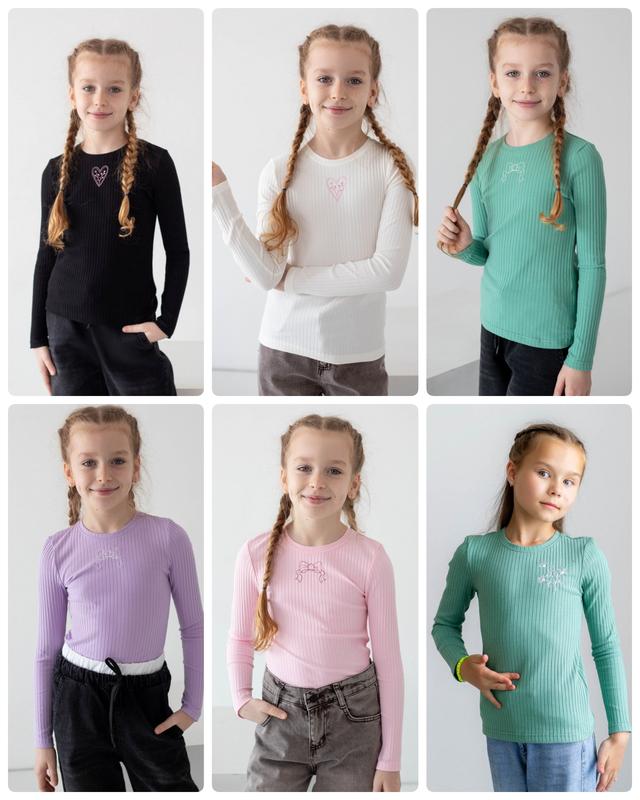 Классический лонгслив для девочек из качественного полотна мустанг. Полотно мягкое, приятное к телу. Хорошо держит форму, не растягивается и не скатывается. Джемпер с округлой горловиной, длинным рукавом. Спереди лаконичная вышивка. Модель сочетается с классическими брюками, или с узкими джинсами и юбками. Склад: 95% бавовна, 5% еластан Полотно: мустанг