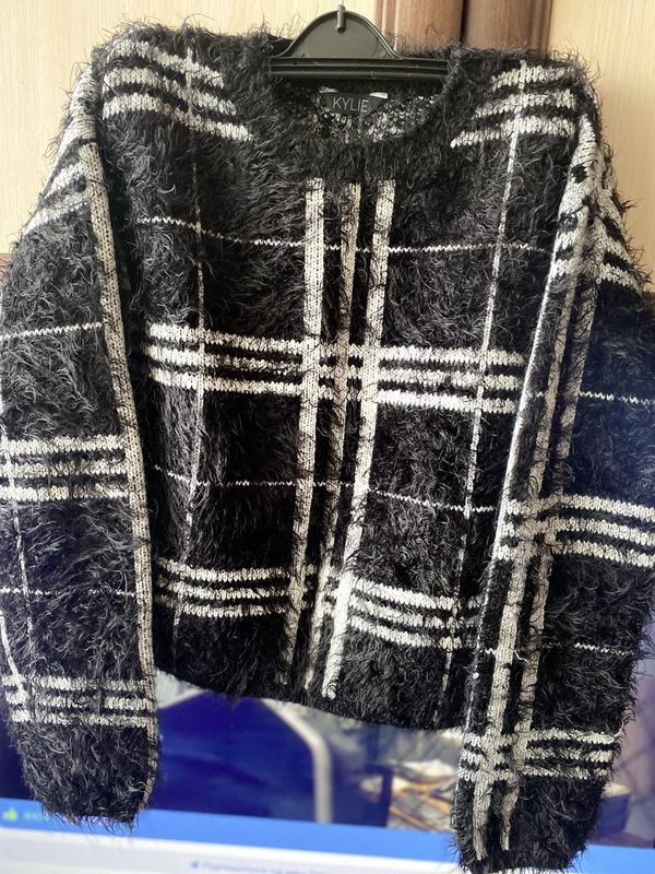 Укороченный джемпер (кроп) на 9-10 лет. Комбинированная структура - пушистый черный ворс и белая шелковая ниточки. В идеальном состоянии. Длина - 44.5 см. Длина рукава - 44 см. Ширина в районе груди - 47 см.