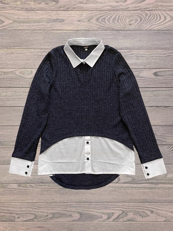 Джемпер обманка для дівчинки. Колiр: синiй. Розміри: 152,158 (повномiрнi). Таблиця вимiрiв виробу: Розм / ШирГр / ДовжПер / ДовжПл+ДовжРук 152 / 42 / 58 / 10+59 158 / 44 / 60 / 11+61 Шир Гр - напiвобхват виробу по лiнії грудей ДовжПер - довжина переда від найвищої точки плеча ДовжПл+ДовжРук - довжина плеча + довжина рукава Дивіться всі оголошення. В наявності багато стильних та якісних речей