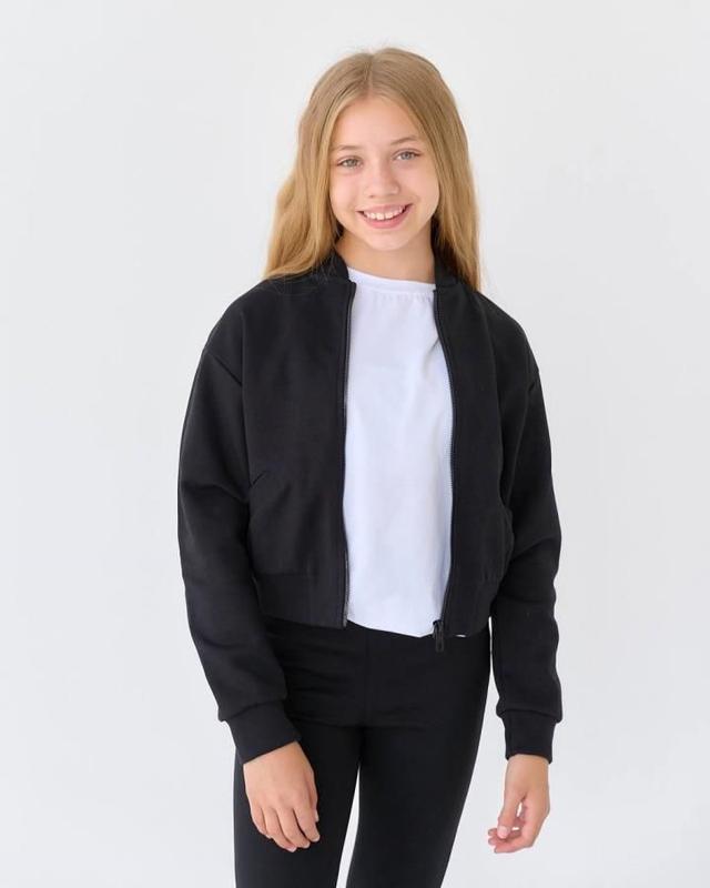 Про товар: - Стильний бомбер для дітей; - Застібка - блискавка; - Виконана з тонкої двунитки; - Комір - стійка; - Опущена лінія плеча; - Доповнений манжетами на рукавах. Склад: 70% бавовна, 20% віскоза, 10% лайкра. Заміри, см: Розмір 128 : ДВ - 37, ДР - 55, ПОГ - 40. Розмір 134 : ДВ - 39, ДР - 56, ПОГ - 41. Розмір 140 : ДВ - 40, ДР - 59, ПОГ - 43. Розмір 146 : ДВ - 41, ДР - 62, ПОГ - 44. Розмір 152 : ДВ - 42, ДР - 65, ПОГ - 46. Розмір 158 : ДВ - 43, ДР - 68, ПОГ - 48. ДВ - довжина виробу від горловини. ДР - довжина рукава від горловини. ПОГ - півобхват грудей. Ймовірна похибка виміру 2-3 см.