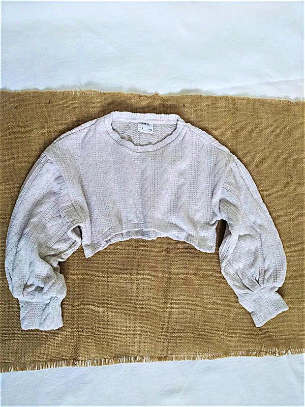 Укороченный джемпер Zara, на 6 лет (по бирке), свободно идет и на 7 лет также. Плотная вязка. Бавовна. Цвет светло-серый с бежевым оттенком. Длина 24, рукав (начинается ниже линии плеча) 34, ПОГ 36. Отличное состояние.