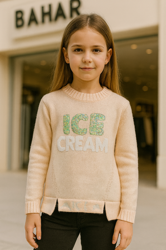 Детский вязаный свитер (джемпер) для девочки «ice cream» с пайетками, пудровый / 4-5 рок /...