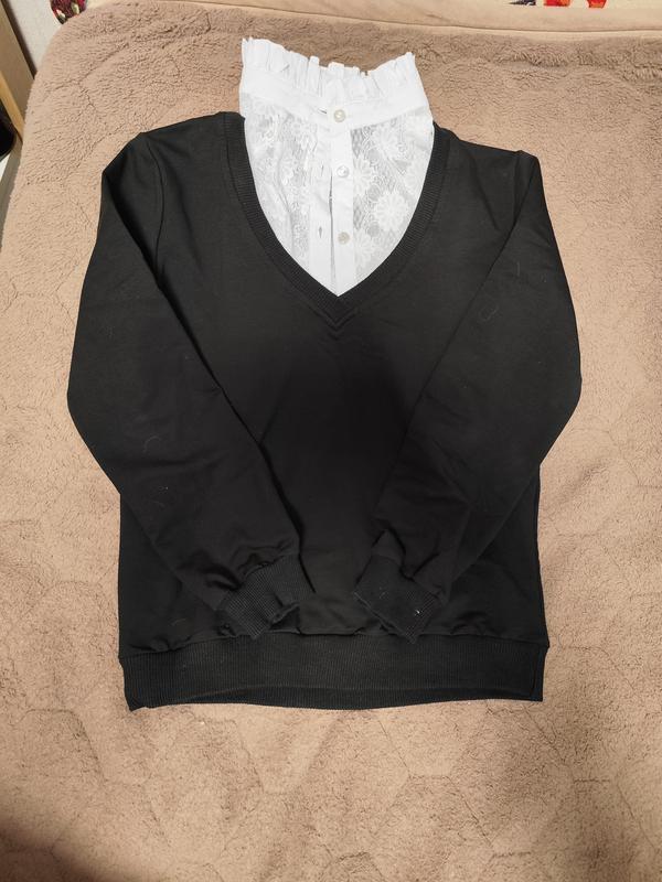 Джемпер + коммерец. Очень удобная вещь для школы. На 1 сентября одели и все! Стан нового!!! Очень удобно кто ходит в школу. Можно с коммерцем одевать на кавычки, и джемпер носить просто каждый день на гольфик. Замеры длина 53 мм, от проймы до проймы 43 см, рукав от плеча 48 см, плечо 9 см.