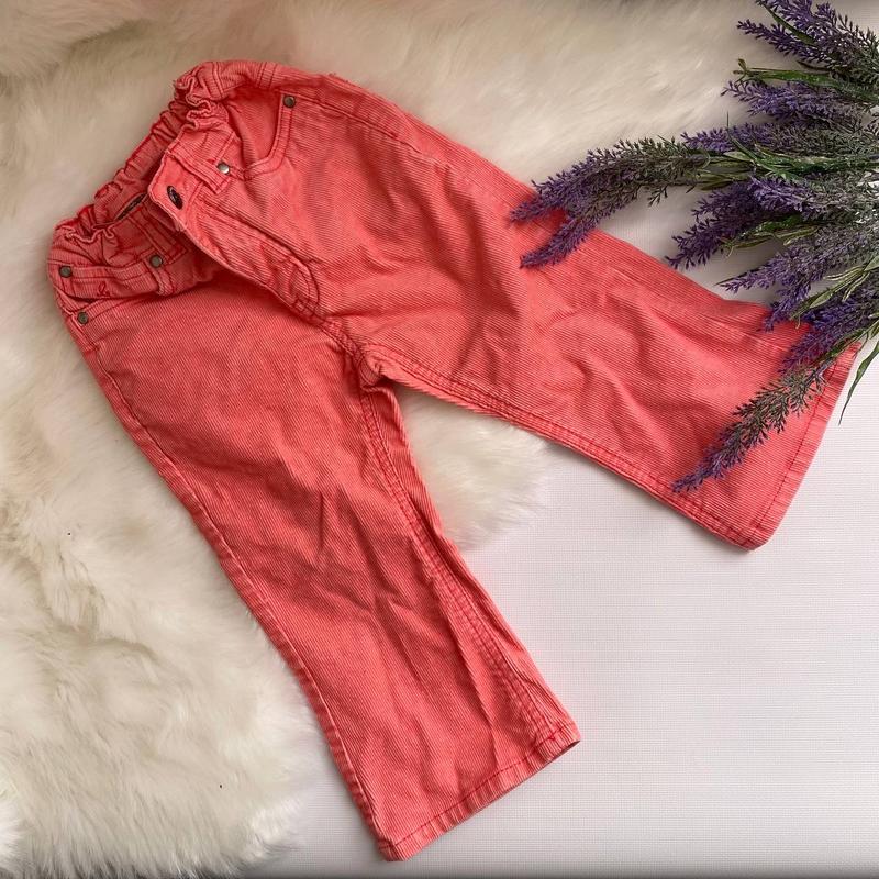 Яркие модные джинсы Состояние: идеальное Размер: 1-1,5 года Стильные джинсы. Пояс на резинке, регулируется под любой объем бёдер. Замеры: Длина изд 48 см По внутреннему шву штанины 28 см Полуобхват пояса 23 см (регулируется) ПОБ 30 см