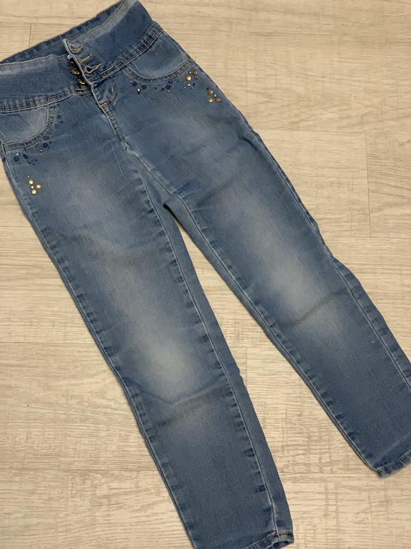 Джинсы в хорошем состоянии на девочку 6-7 лет. Ткань тоненький джинс. Размер 6-7 лет (122-128). Замеры: длина 70, шаг 54, пояс 25.