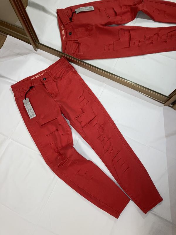 Джинси Vans , дуже круті, з порізами. Колір не такий яскравий , як вийшов на фото, більш приглушений, до коралового. Нові з бірками. Заміри: довжина 86 см, в поясі 33 см, в бедрах 40 см, катон тягнеться, посадка спереді 23 см, ззаді 31 см, крок 63 см. Виробник Індія.