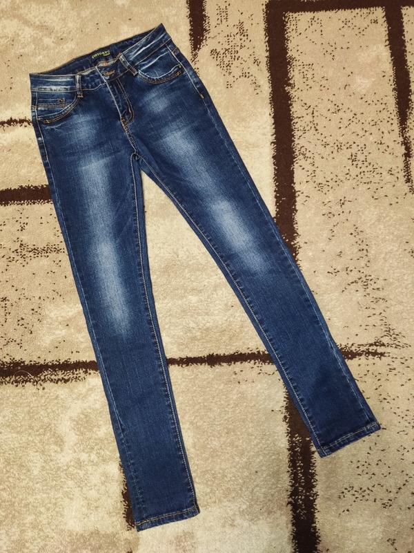 Нові без бірки джинси гарного синього кольору з потертостями. Розмір 27 заміри: зовнішній шов 100 внутрішній шов 75 пояс 32 посадка 22/28 стегна 42 ширина штанини знизу 13.5 Джинс трохи тягнеться. Стан нові, без бірки