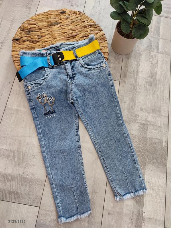 Цена 499грн Джинсы для девочки. Спереди и сзади есть карманы. Застегивается на пуговицу и замочек, в поясе есть утяжка – регулируемая резинка и ремень. Материал: плотный джинс хорошего качества. После стирки не садятся и не теряют цвет. Производитель Турция!!! 3-4р. Длина 56см., шаг 36см., пояс 27см.. – 3шт. 4-5р. Длина 59см., шаг 37,5см., пояс 27см.. – 2шт. 5-6р. Довжина 65см., шаг 42,5см., пояс 28см.. – 2шт. 6-7р. Довжина 68,5см., шаг 46см., пояс 28см.. – 1шт. 7-8р. Длина 73.5см., шаг 50см., пояс 30см.. – 2шт. 8-9р. Длина 77,5см., шаг 53,5см., пояс 30,5см.. – 1шт. 9-10р. Довжина 80,5см., шаг 56,5см., пояс 31см.. – 1шт. 10-11р. Длина 84см., шаг 60,5см., пояс 31см.. – 1шт. 11-12р. Длина 87см., шаг 62,5см., пояс 32,5см.. – 1шт. 12-13р. Длина 90см., шаг 65см., пояс 34см.. – 1шт.