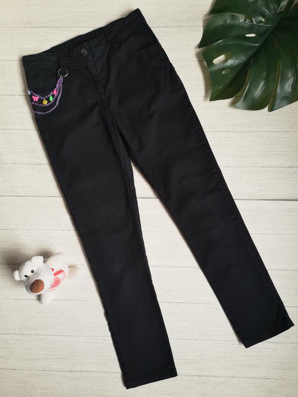 Базовые джинсы из облегченного джинса, украшение снимается. Замеры: длина 89, шаг 63, пояс 33, есть утяжка, бедра 41, глубина сзади 29, спереди - 24, ширина штанины снизу 14.