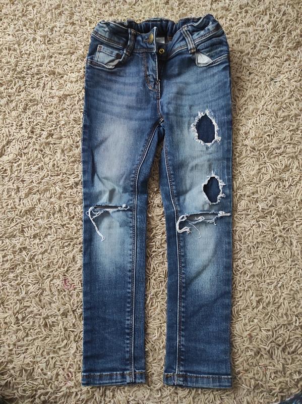 Джинсы подертые (на коленях полностью, а выше подшиты). На поясе регулируются резинкой. На 104 см. замеры добавок при необходимости