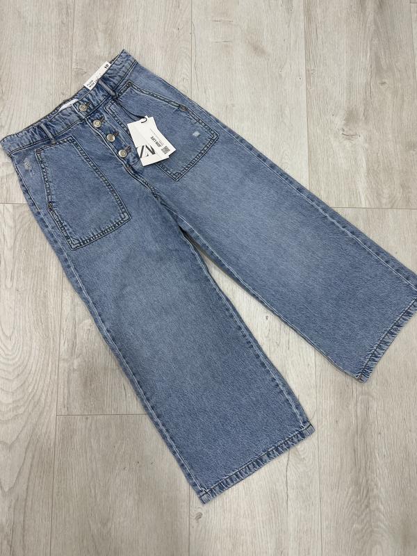 Стильні нові джинси для дівчинки Zara Розмір 10 років 140 см. Джинс не досить плотний .не тягнеться .пояс регулюється,зручні застібки на кнопках Заміри: довжина калоші -78,5 крокова довжина -54 пояс-32 бедра напівоберт -43,5