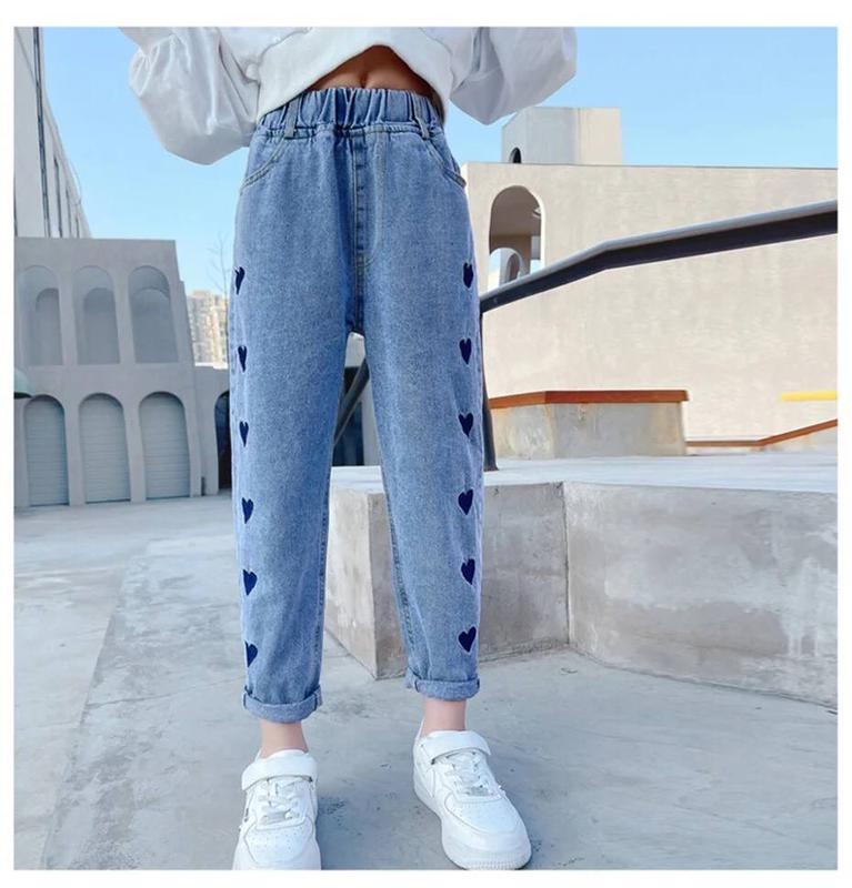 Невероятно крутые джинсы для девочки 👍🏻 Пояс на резинке,на попе есть карманы. Очень круто выглядят 😍 Украшены вышивкой с сердечками🖤 Хорошее качество и практичный дизайн 💥👍🏻 🦊Код: 22 110 - длина - 64 см, крок- 40, бедра 36 см 120 - длина - 69 см, крок- 45, бедра 37 см 130 - длина - 75 см, крок - 49, бедра 38 см 140 - длина - 78 см, крок - 53, бежевое 40 см 150 - длина - 84 см, крок-57 см, бедра 41 см Цена 595 грн🔥