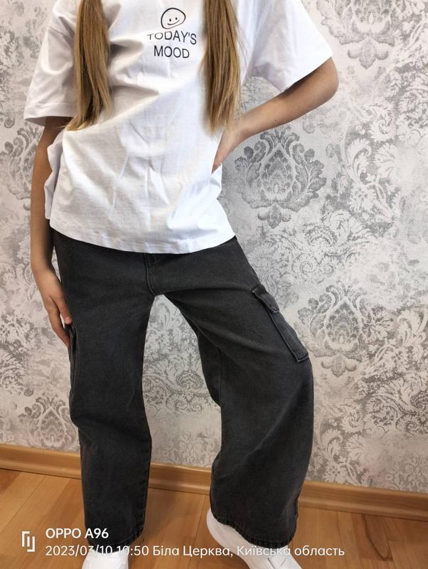 Самая популярная модель джинсов для девочек с накладными карманами. Пояс на резинке. Пряма модель. Джинс плотный, чуточку стрейч. Цвет темно-серый Производитель Турция 128, 134, 140, 146, 152, 158