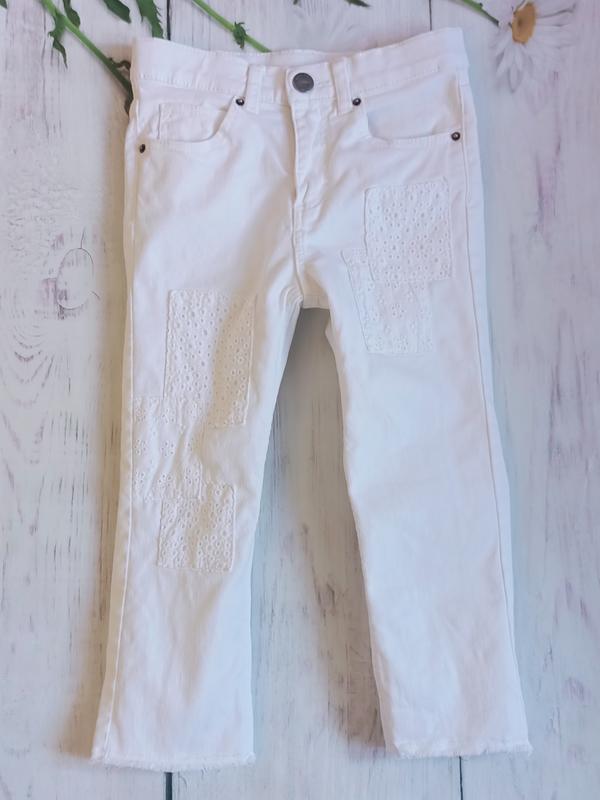 Белые летние джинсы H&M. Размер 4-5 лет рост 104-110 см. В отличном состоянии, без дефектов и нюансов. В поясе утяжка. Длина 54 см