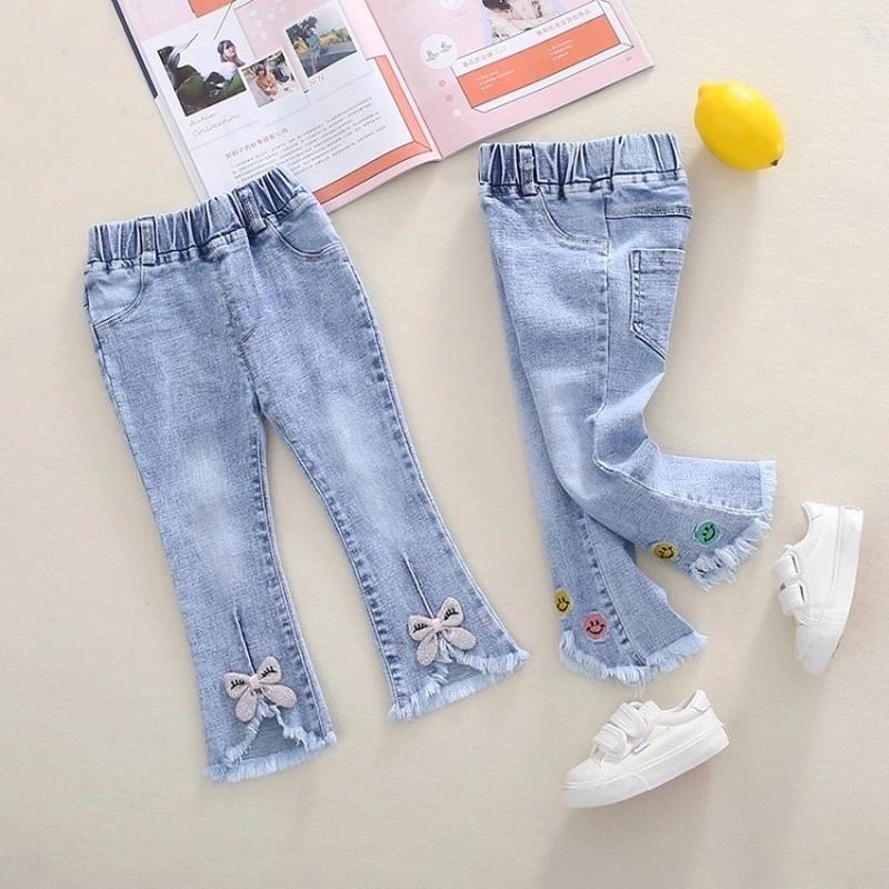Стильные весенние джинсы для девочки👍🏻 Пояс на резинке,на попе есть карманы. Очень круто смотрятся на детках 😍 Хорошее качество и практичный дизайн 💥👍🏻 90 - длина - 50 см, крок- 30, бедра 27 см(3шт) 100 - длина - 55 см, крок - 34, бедра 29 см(3шт) 110 - длина - 57 см, крок - 36, бедра 30 см(3шт) 120 - длина - 62 см, крок-40 см, бедра 31 см(3шт)