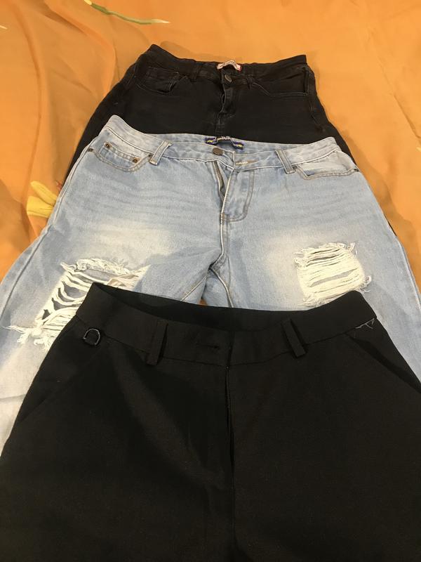 1. черные 70 грн, состояние 7/10 2. голубые, почти новые 230 грн 3. брюки, тоже новые 180 размеры 25-26