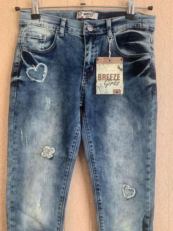 Стильные, очень классные турецкие джинсы для девочек, отличного качества, новые с биркой. По поясу идет утяжка, размер на рост 152. Замеры длина 86, шаговый 64, по бедрам 40 талия 35. Супер джинсы.