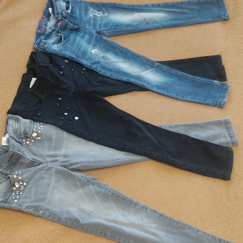 Джинсы Next 7 лет - 122р Стан замечательный Тканина тягнеться Есть затяжка в поясе во всех джинсах Синие рваные, дыркие родные Длина 65 см Пояс 29 Крок 49 Сірі: Длина 69 Пояс 30 Крок 52 Черные: Длина 67 Пояс 30 Крок 50