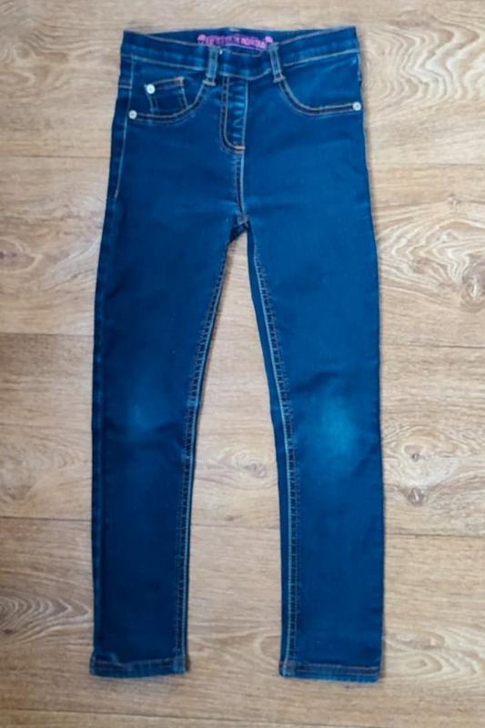 Джинсы на девочку 6-7 лет ТМ Next, без утепления. Состояние очень хорошее. Плотный джинс, пояс без утяжки, можно вставить поясок. Замеры - длина 70,5 см, шаг 49,5 см, полуобхват в поясе 28 см.