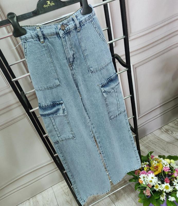 Крутезні та стильні джинси карго виробництво Турція, дуже гарно сидять по фігурі, є кишеньки в поясі є утяжка джинс не тягнеться Довжина/крок/пояс 14-105\79\47\35 15-109\82\50\36 Ток