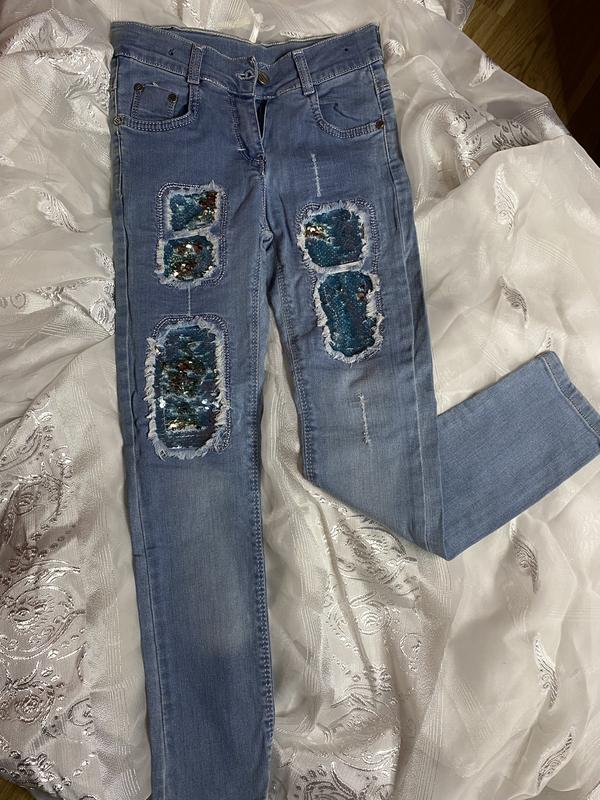 Джинси з блискітками (перевёртышами) На возраст 9-10 лет По дополнительным замерам пишите в дырэкт Турция