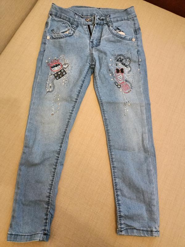 Продам джинсы для девочки. В хорошем состоянии. Размер 122 см. Легкие и удобные. С стразами и вышивкой.