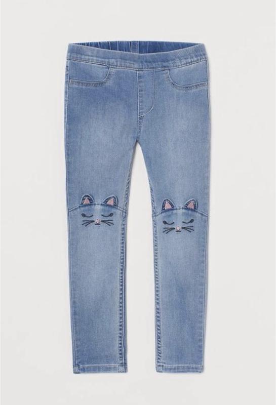 Леггинсы из стираного эластичного денима. Модель с резинкой на талии и ложной ширинкой. Поддельные передние карманы и настоящие задние карманы. Хлопок, содержащийся в этой статье, частично переработанного происхождения.