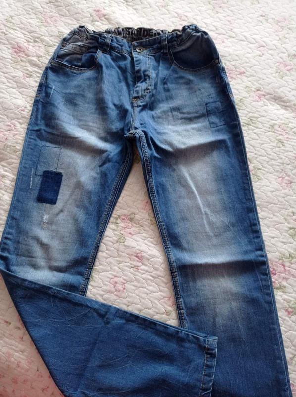 Джинсы для девочки, синего цвета на рост 172 см. Размеры: Длина (внешний шов)-100 см, внутренний - 73 см; ширина (в талии)-37 см; ширина (в бедрах) 90 см; высота посадки- 26 см. Ширина талии регулируются с помощью резинки. Состояние: идеальный (носили несколько раз)