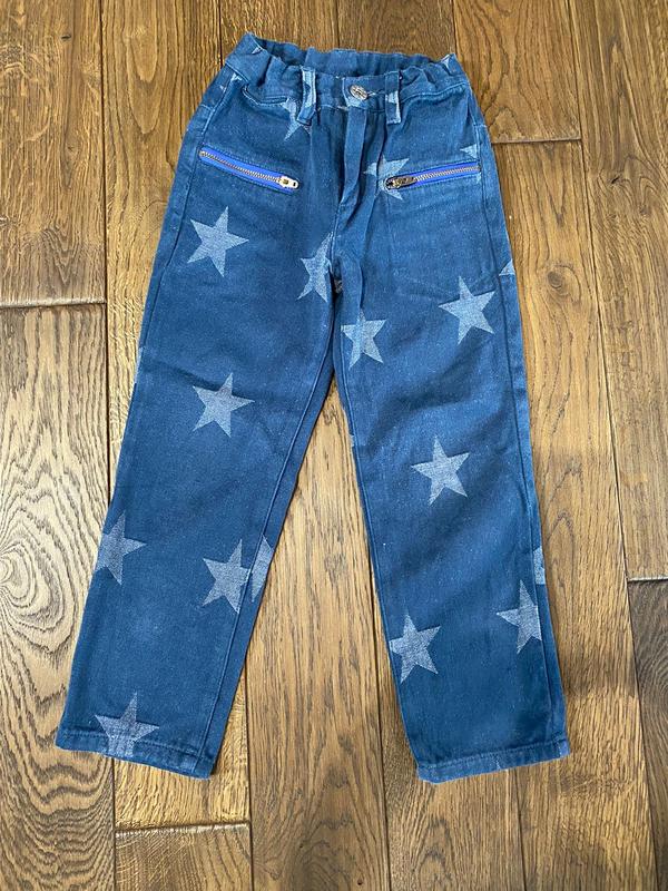 Джинсы с принтом звездочки.С утягивающей резинкой на поясе.