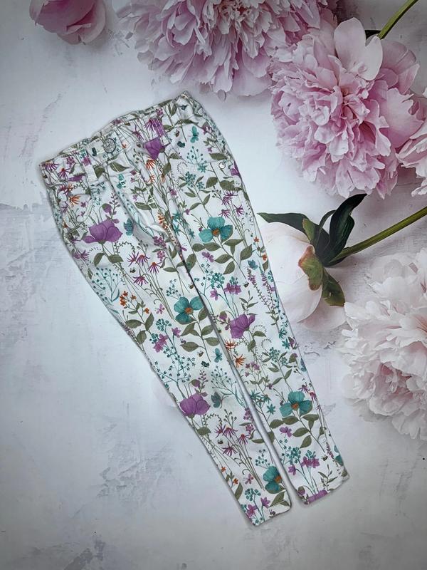 джинсы с цветочным принтом 🏷️Next 4-5 лет длина 61. шаг 42. ПОТ 24+- утяжка