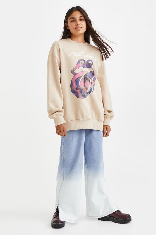 Широкие брюки H&M для девочки на 14+ на р.170. Брюки из прочного футера, имитирующего джинсовую ткань, с мягкой обтянутой резинкой на талии и искусственной ширинкой. Фальшивые передние карманы, настоящие задние карманы и широкие штанины с разрезом внизу. Состав. Хлопок 74%, Полиэстер 19%, Эластан 7%.