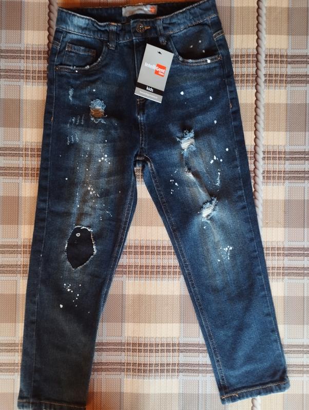 Джинси для дівчинки IntelliGent, м'який котон, присутні декоративні подряпини, бризки білої фарби, по бірці розмір 8/9 років 138 см, але краще орієнтуватись по замірам: довжина 77 см шагова довжина 51 см бедра 38 см, тягнуться талія 32 см є утяжка ширина штанини внизу 13,5 см