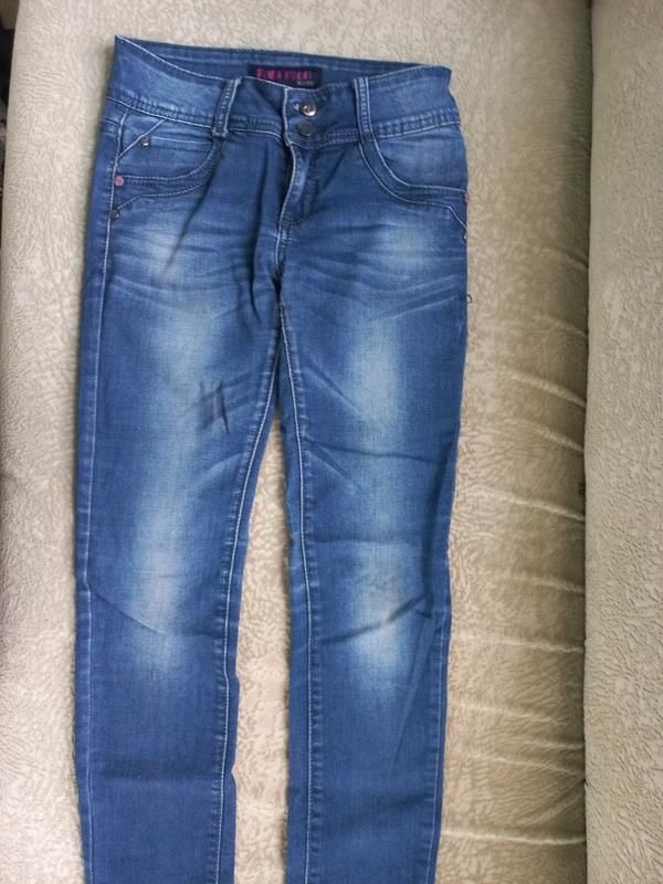 Джинсы с средней посадкой. Девочки. Сзади на кармане флаг Великобритании. Возраст 10-11 лет. Було уживано. Стан 8/10