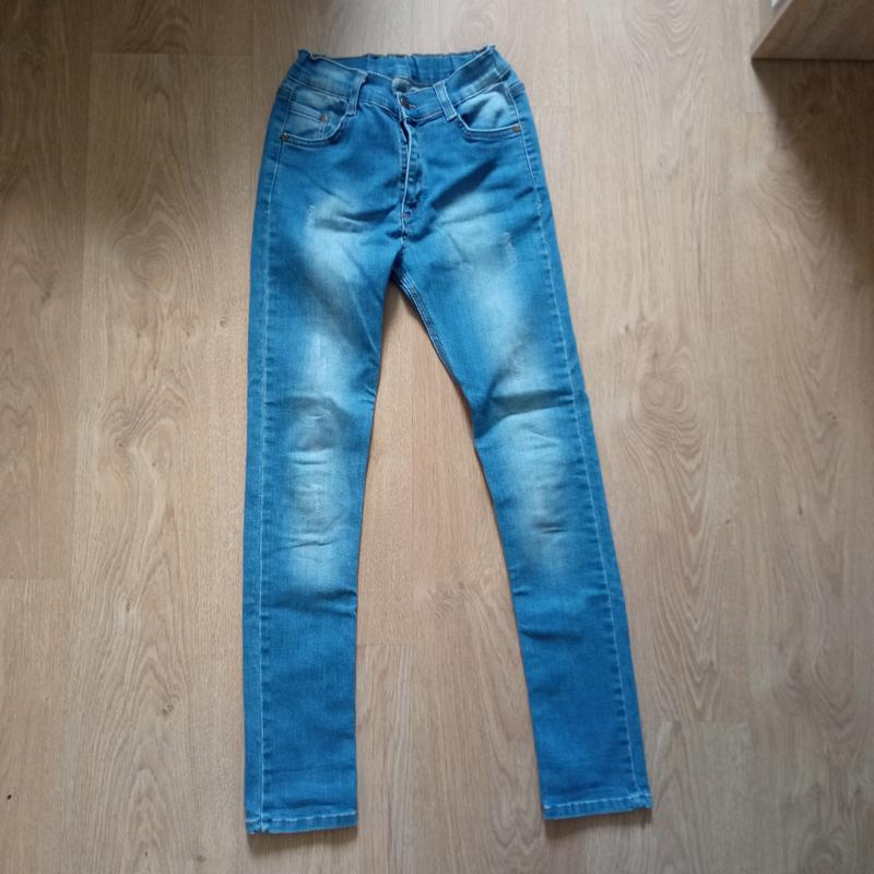 Голубые джинсы на девочку. Состояние отлично длина 90 шаговый 67