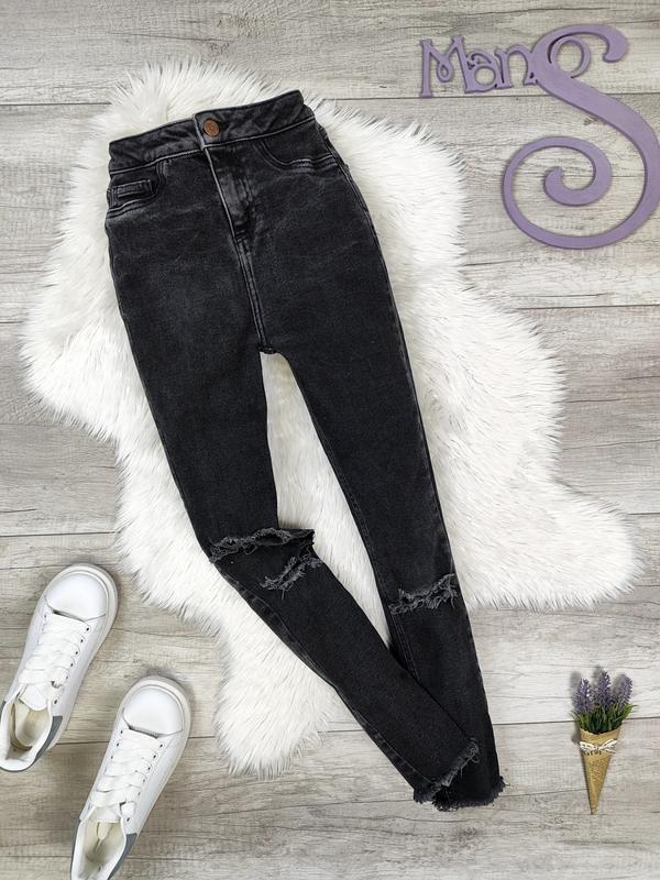 Джинсы для девочки new look тёмно-серые рваные скинни размер 158