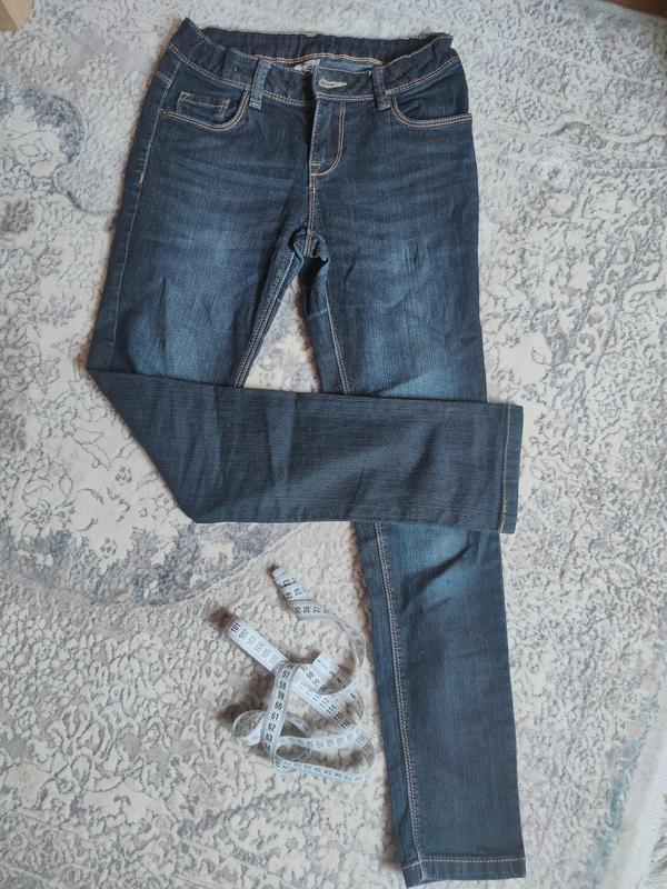 Джинсы на девочку C&A Темно-синего цвета с оранжевой строчкой. Размер 152 Длина - 87 см Высота сиденья спереди - 19 см (трехая заниженная талия) Высота сиденья сзади - 30 см Ширина в талии - 32 см Ширина в стегнах - 40 см. Материал: 82% cotton, 16% poliester, 2% elastane