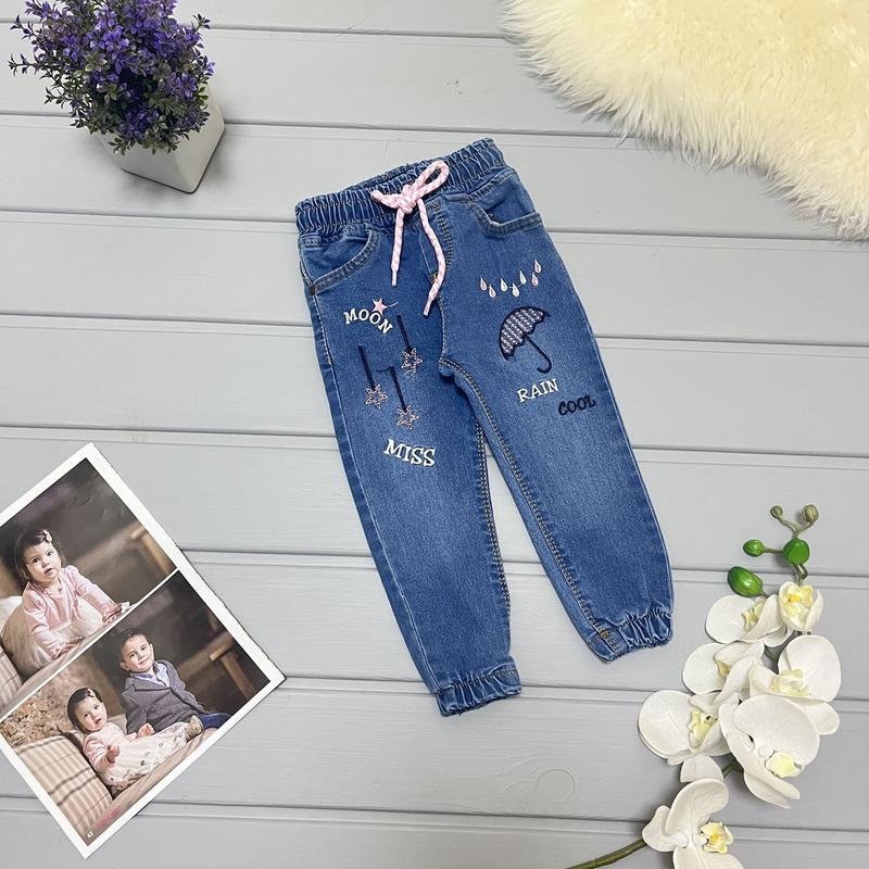 Джоггеры зонта для девочки. Спереди и сзади есть два кармашка. Рисунок вышит. В поясе и на манжетах резиночки. Также есть кулиска в поясе для удобства. Производитель Турция Замеры: 86 - длин.44 / крок 26 92 - длин. 47/крок 30 98 - длин. 51/крок 32 104 - длин. 54/крок 35 110 - длин. 58/крок 38