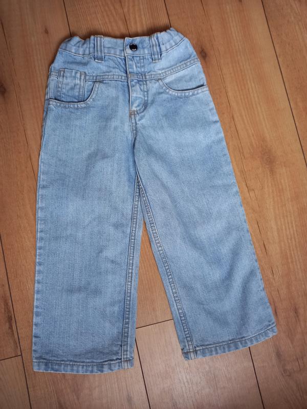 Джинсы детские, прямые, качественный винтажный деним размер 98 см. Замеры: длина 58 см, шаг 37 см, ПОТ 27 см, стягивается резинкой со середины, ПОБ 34 см,, Поклешные внизу 17 см.