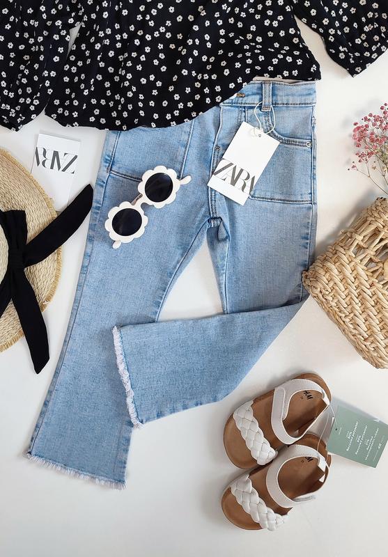Джинсы zara 92,98 см для девочек клёш стильные клешные штаны детские
