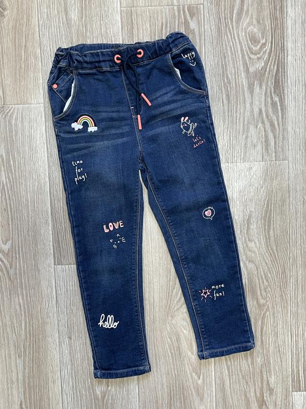 Мягкие джинсики с аппликацией Спереди и сзади карманы Талия с утяжкой Состояние идеальное 🏷️Reserved 6 лет/116 р Длина 67. Шаг 46. ПОТ 26-32