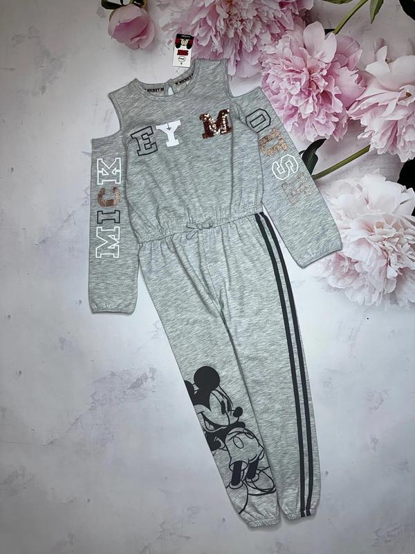 Трикотажный комбинезон Микки Новый 🏷️Disney-George 7-8 лет/122-128 Длина 106(35)/61 до паха. Шаг 48. ПОГ 37. Рукав от подмышки 34(40 по верху)